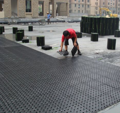 蓄排水板鋪設完畢后,可進行下一道工序,盡快鋪設好過濾土工布和基質層,防止泥土、水泥、黃砂堵塞孔道或進入蓄排水板的蓄水、水槽、排水通道。為確保蓄排水板充分發揮其作用同時可在過濾土工布上面鋪上操作板,方便進行綠化施工。
